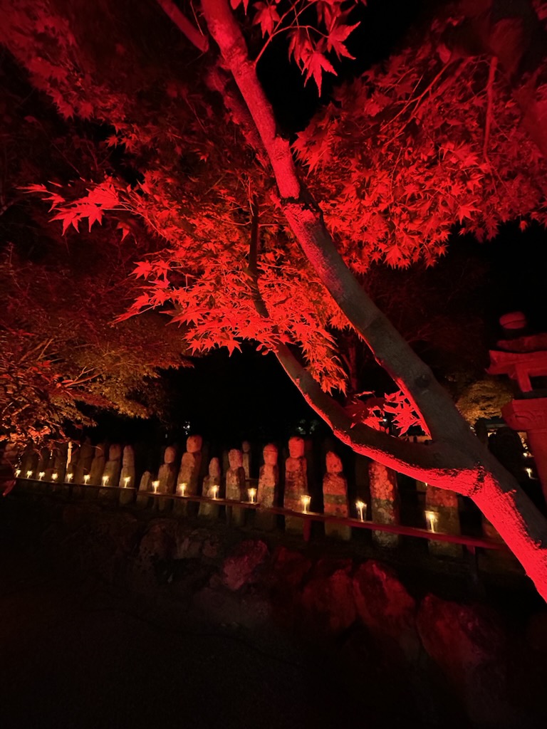 ろうそくの灯りで神秘的な雰囲気の羅漢寺
